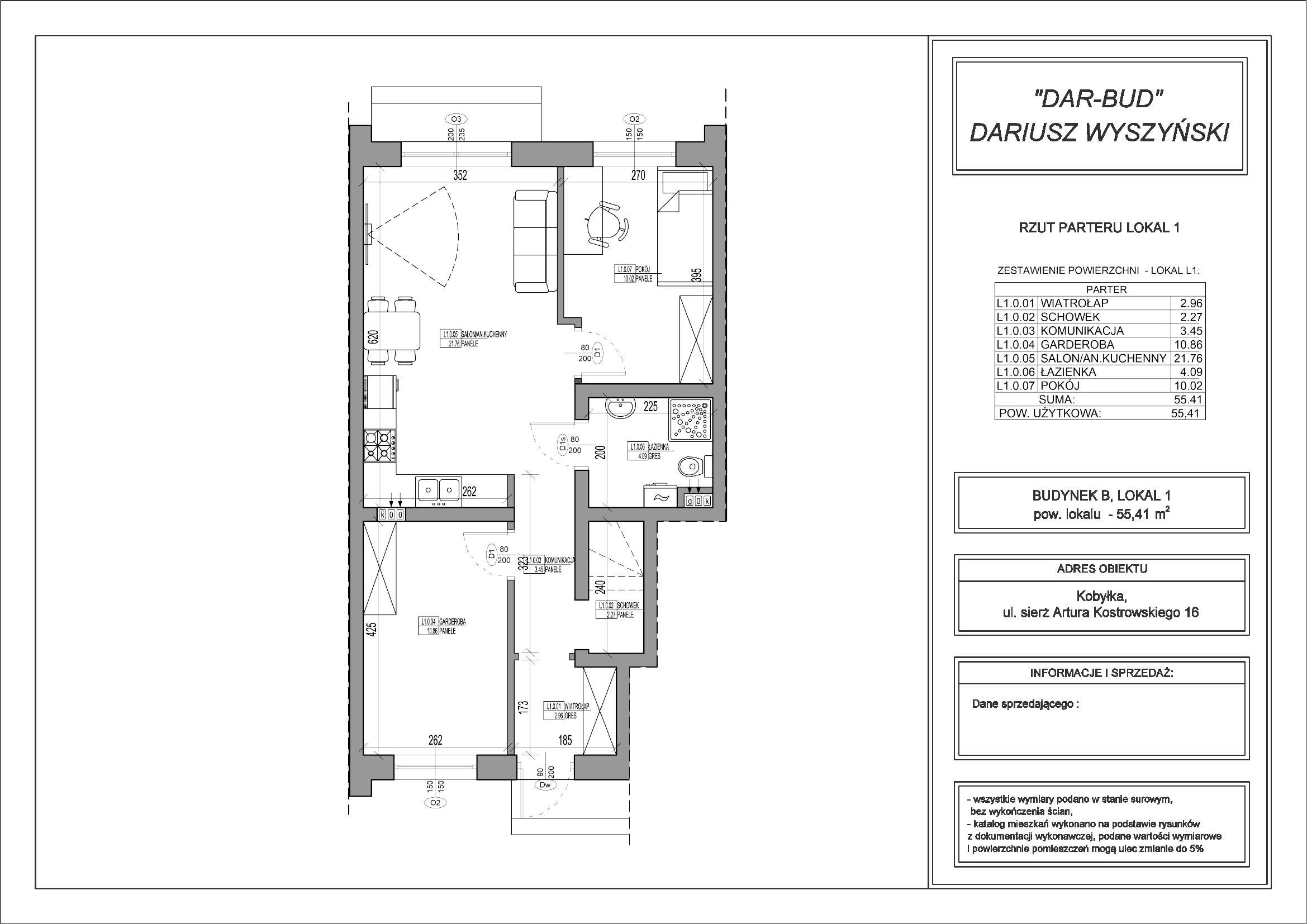 05-230 Kobyłka, ul. Sierż. A. Kostrowskiego B16 Parter 1 55.41 37 2+Aneks 9,727.49 539,000.00 2xMP naziemne więcej informacji
