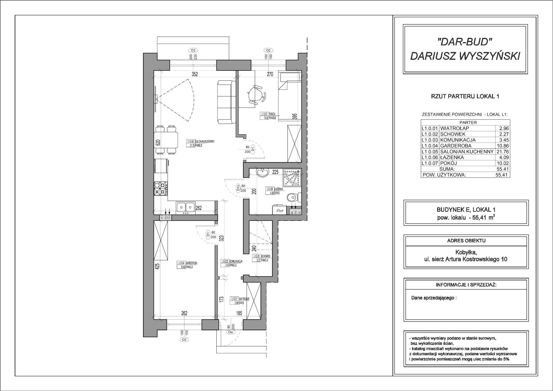 05-230 Kobyłka, ul. Sierż. A. Kostrowskiego E10 Parter 1 55.41 38 2+Aneks 9,727.49 539,000.00 2xMP naziemne więcej informacji